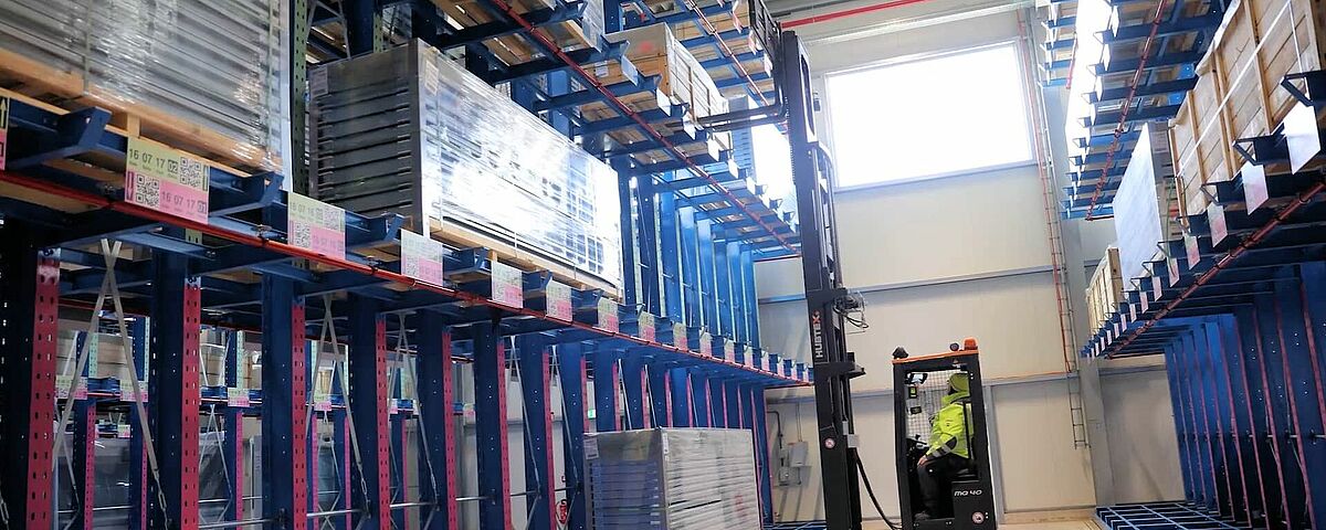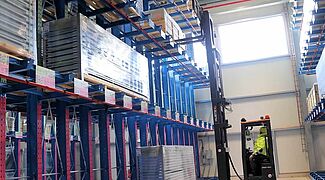 Investendo in un nuovo magazzino spedizioni, Kardex ha aumentato significativamente le proprie superfici di stoccaggio. L’azienda utilizza il nuovo sito come magazzino per componenti e assiemi dedicati ai propri sistemi di intralogistica prima di spedirli ai clienti. In totale le scaffalature OHRA, con lunghezza fino a 48 metri e quattro livelli di carico, offrono spazio a sufficienza per imballaggi di lunghezza compresa tra 1.250 e 4.300 mm. Ogni mensola cantilever è in grado di supportare fino a 1.250 kg, mentre ciascuna colonna ha una portata pari a 3.750 kg per lato. Grazie all’utilizzo di un carrello laterale, Kardex è riuscita a realizzare corridoi stretti tra le scaffalature, sfruttando al massimo la superficie disponibile. A completare la fornitura anche un portapallet standard e due a doppia profondità, con una portata di 2.400 kg ciascuno. Gli scaffali doppi hanno una profondità di 3,2 metri e possono supportare imballaggi fino a 1,5 tonnellate.